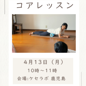4月コアレッスンのお知らせです。 コアレッスンは整体の要素を取り入れながら、骨盤底筋群(骨盤の内側の筋肉)を中心としたインナーマッスルにフォーカスして…
